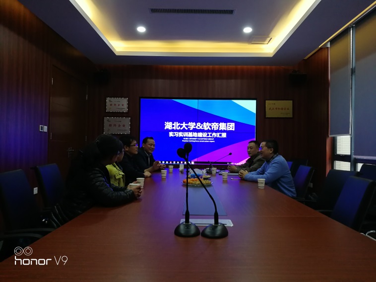 1月26日下午,校教务处副处长李其峰、数统学院分管教学副院长付应雄,信息系主任李胜华等人前往武汉软帝集团参加了yL23411永利集团-软帝集团实习实训基地建设研讨会。软帝集团董事长李杰、张总及孙总以及技术骨干柴老师出席了此次会议。