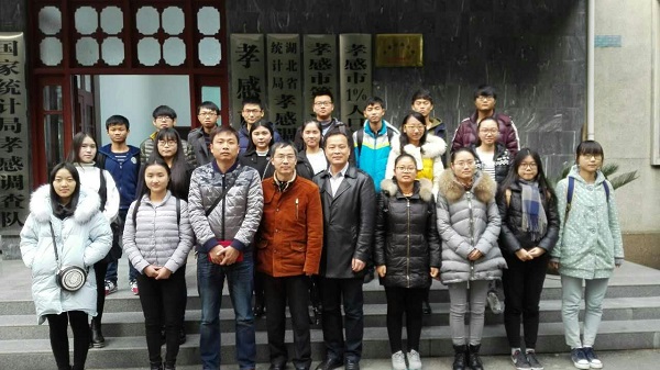 12月23日,在yl23411集团党委书记游春林、副院长付应雄的带领下,学院2015级应用统计学专业20名学生前往孝感统计局开展了为期四天的见习活动。孝感统计局负责人胡启明对学院学生的到来表示热烈的欢迎。