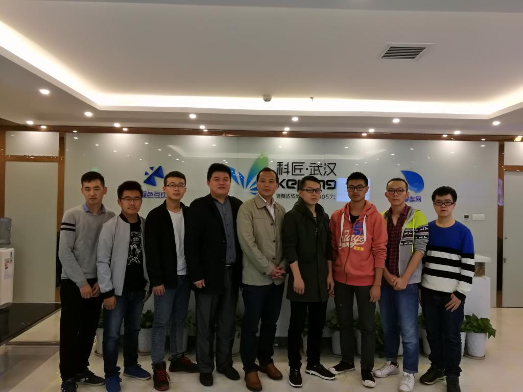 10月13日,学院副院长付应雄、党委副书记陆伟一行前往光谷软件园,看望在科匠中国武汉分公司实习的学生。