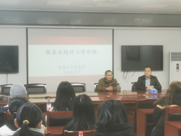 孝感市统计局方副局长、周科长、刘科长和李科长分别为学生们普及人口普查、统计部门的工作分类及各行业统计报告表、统计法律知识及统计执法、投资领域统计等方面的专业统计知识和实际工作经验。