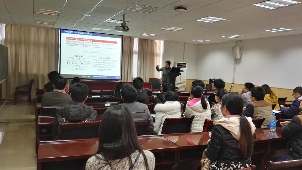 12月4日下午,学院校友、澳门大学王玉龙、邹翠明博士应邀来访我院,并为我院师生做了题为《Atomic Representation based Classification: Theory, Algorithm and Applications》和《Quaternion-based Color Face Recognition》的精彩报告。