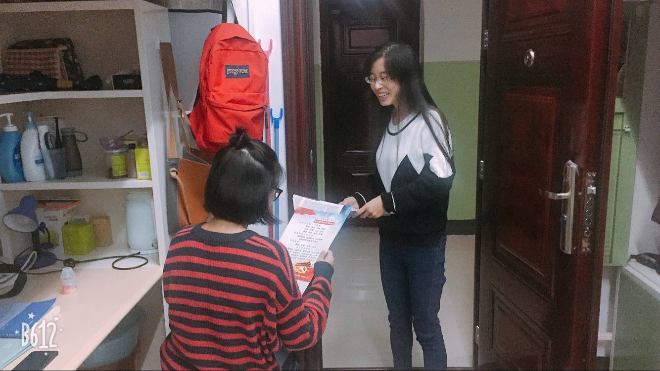 10月10晚,研会成员分成几个小组,先后前往学院各个研究生寝室楼,摸底到校情况,检查寝室卫生和安全用电问题,并向各个寝室分发“争创全国文明校园,共建全国文明城市”宣传单。向大家宣传相关文件和政策。