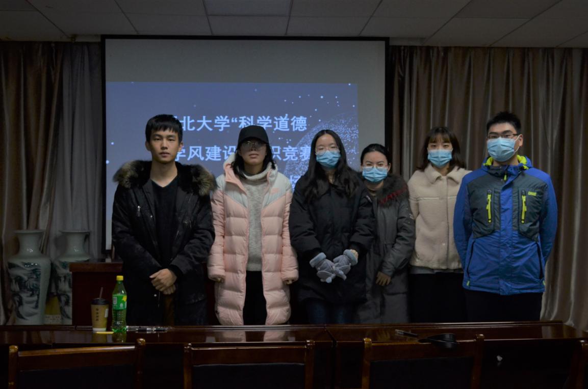 竞赛结束后,工作人员为此次比赛获奖学生颁发奖品,并合影留念。至此,本次“科学道德与学风建设”知识竞赛在全体人员的掌声与欢笑中圆满结束。