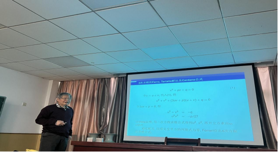 3月7日下午,华中科技大学文志雄教授应邀来访我院,在yl23411集团201教室为师生做了题为3次方程的Ferro、Tartalia解法及Cargano公式的学术报告。