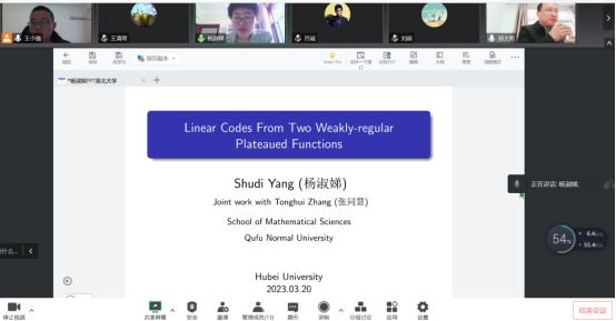 2023年3月20日上午,曲阜师范大学杨淑娣教授应邀为我院师生做题为《Linear codes from two weakly-regular plateaued functions》的线上学术报告。