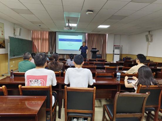 2025年9月9日上午,重庆理工大学刘克峰教授应邀为我院师生作了题为《自守上同调、彭罗斯变换与非经典旗流形的几何》的学术报告。