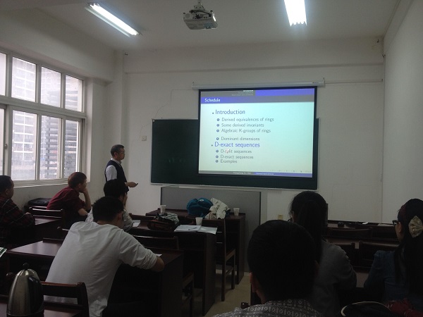 5月20日下午,首都师范大学惠昌常教授应邀来我院访问,并为我院教师和研究生作了一场题为“Derived equivalences and short sequences”的学术报告。