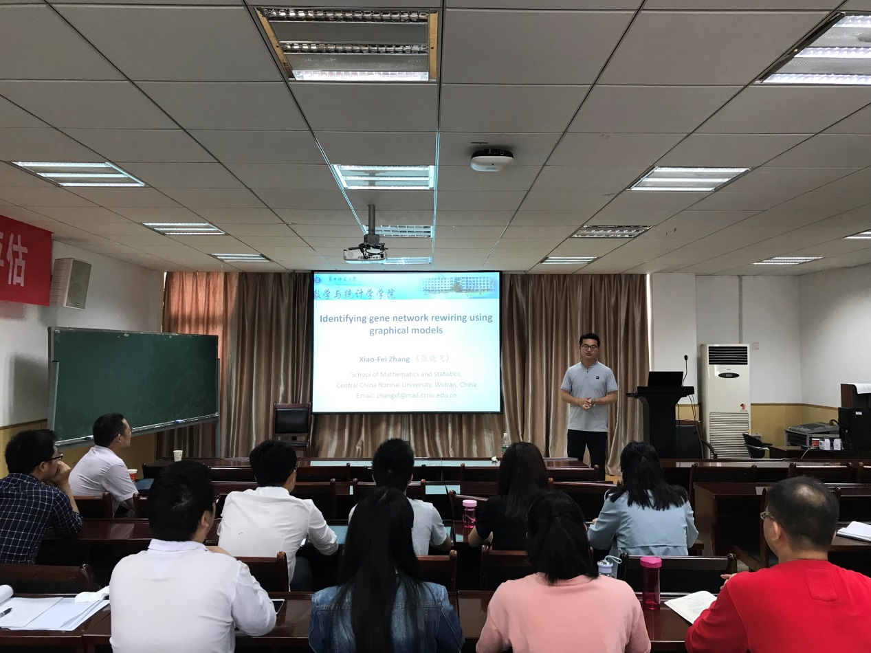 2018年6月1日,华中师范大学张晓飞副教授应邀来访我院,并在报告厅分别为我院师生做了题为《Identifying gene network rewiring using graphical models》的学术报告。