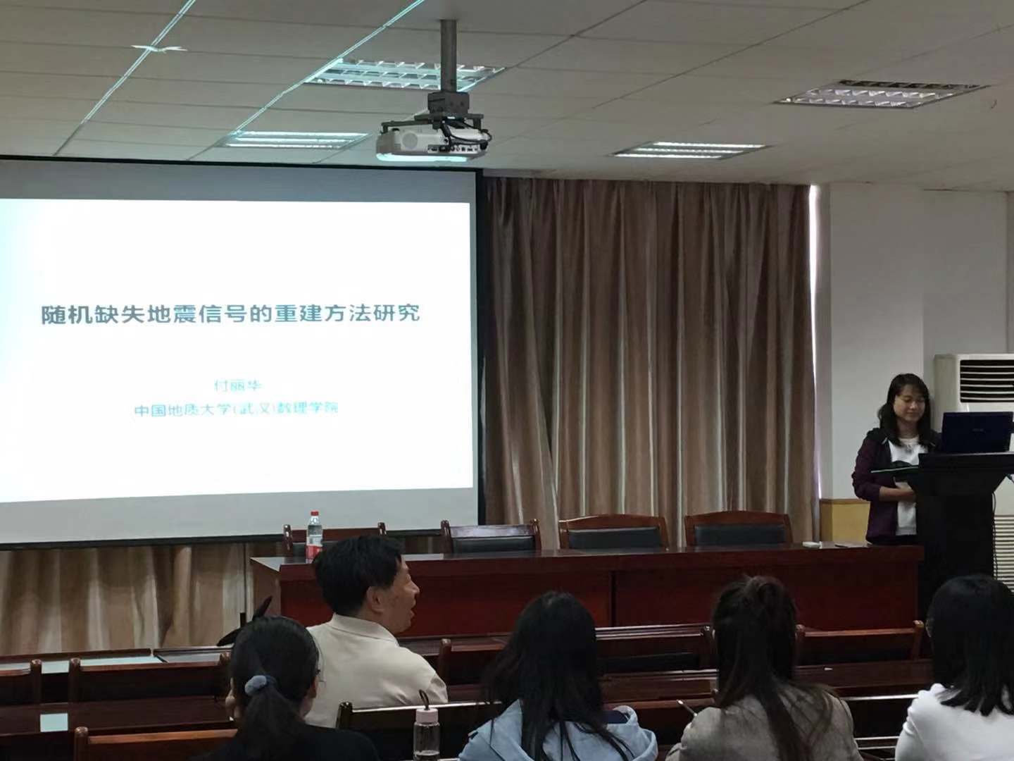 10月11日,学院校友、中国地质大学(武汉)数理学院付丽华教授应邀来访我院,在学院201报告厅为师生做了题为《随机缺失地震信号的重建方法研究》的学术报告。