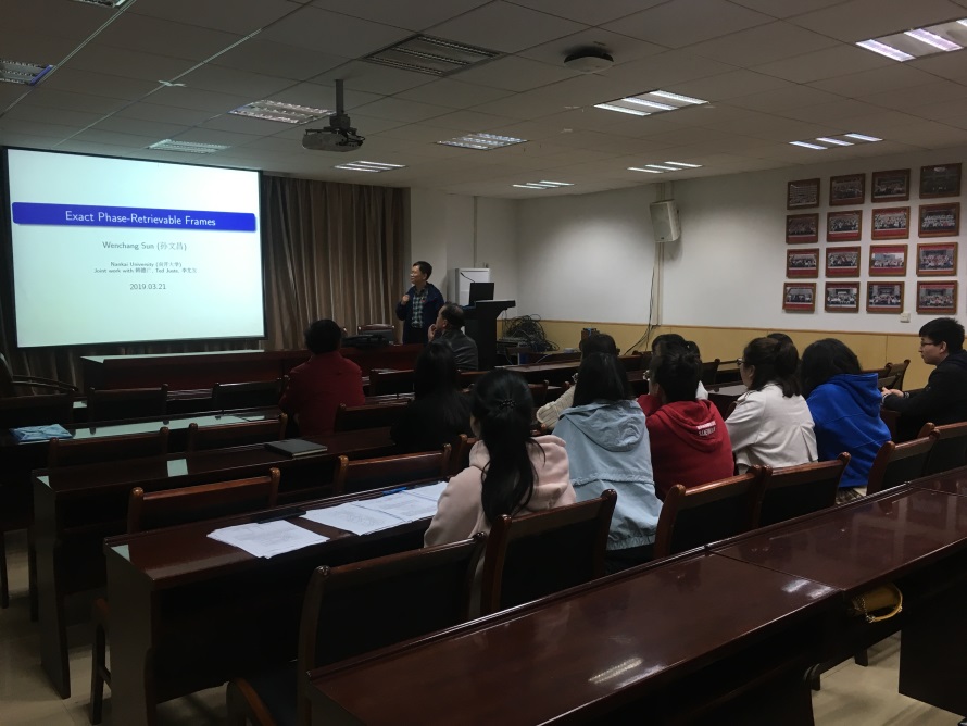 2019年3月21日,北京师范大学杨大春教授和南开大学孙文昌教授应邀来访我院,在院201报告厅为相关师生分别做了题为《Basic Real-Variable Theory of Function Spaces》和《Exact Phase-Retrievable Frames》的学术报告。