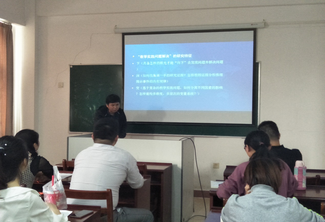 2019年4月23日下午,华中师范大学胡典顺教授应邀来访我院,并为相关专业的教师与研究生做了题为“数学教育的实证研究”的学术报告。