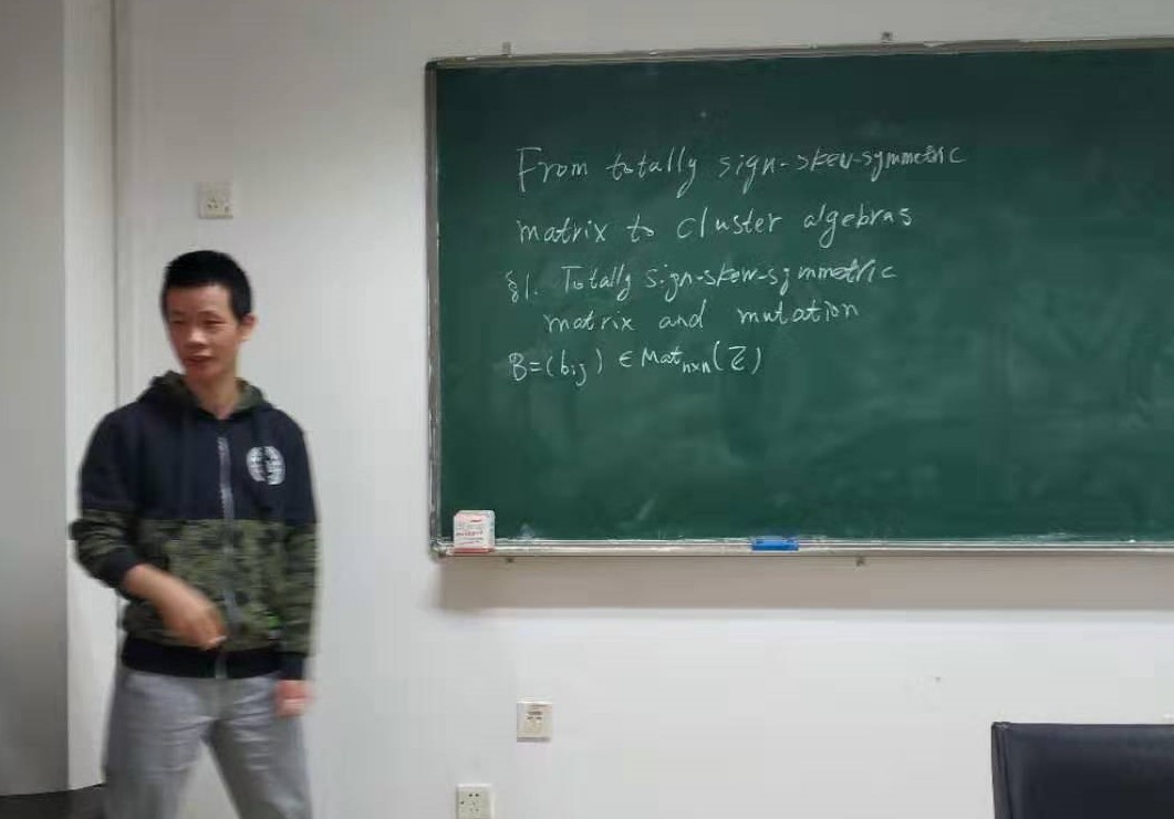 2019年10月25日上午,香港大学黄敏博士应邀访问yl23411集团,并在学院203学术报告厅作题为“From totally sign-skew-symmetric matrix to cluster algebra”的学术报告,与代数学领域的师生就Cluster代数、范畴化等前沿课题做深入细致的沟通与交流,并与相关方向的研究生分享了科研的体会。