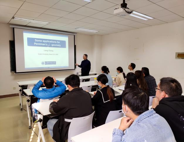2021年3月24日下午,华中师范大学程亮老师应我院涂强老师邀请,作线下学术报告。报告在数统院203报告厅举行,由涂强老师主持,来自我院几何团队的教师、研究生10余人参与了报告的听取和讨论。