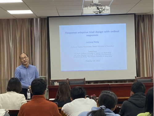 2021年10月28日下午在yl23411集团201学术报告厅,厦门理工学院应用数学学院钟俊江教授应我院刘展教授邀请,为我院师生作了一场生动的学术报告。本次由刘展教授主持,来自应用统计专业的教师、硕士研究生等共30人参与了报告的听取和讨论。