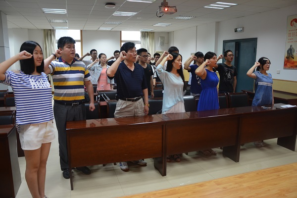 活动在国歌声中开始,游书记发表致辞,他表示,1921年7月23日,中国共产党第一次全国代表大会在上海举行。95年来,中国共产党由小到大,由弱变强,领导中国人民冲破重重难关,夺取了革命斗争和经济建设的一个又一个胜利。我们应牢记中国共产党的光辉历史,以一个党员的标准严格要求自己,希望同学们加强责任意识,发挥先锋模范作用。学生党员代表范馨同学也结合自己的学习和生活交流了自己的思想和体会。