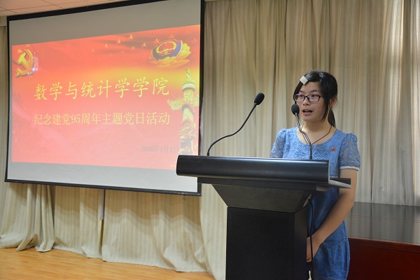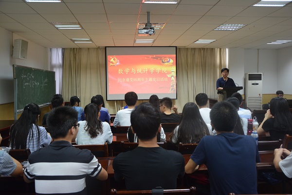 在“七一”建党节暨中国共产党成立95周年当天,7月1日上午,数统学院庆祝建党95周年主题党日活动隆重举行。院党委书记游春林出席活动并讲话,全院学生党员参加活动。活动由党委副书记陆伟主持。