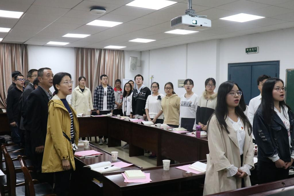 会议伊始,两个支部的组织委员通报了到会情况和10月份党费收缴情况;随后,支部成员集体奏唱国歌,数统学院本科生第二党支部宣传委员徐文修带领全体党员重温入党誓词;接着,学生工作部(处)、武装部、校团委联合党支部宣传委员张珣带大家领学《中国共产党支部工作条例(试行)》第六章内容,视频学习《中国共产党第十九届中央委员会第四次全体会议公报》,支部书记杨元业通过会议内容、显著优势、总体目标、“十三点坚持”的工作要求为主线和大家解读党的十九届四中全会公报;随后,数统学院本科生第二党支部成员甘宁从为什么入党、怎么入的党和能为党做什么三方面内容将“四重四亮”与个人成长相结合,谭紫莺以“重忆入党经历”为题和大家展开讨论交流,支部书记杨元业围绕年轻人“五不怕”(即:不怕任务繁重、不怕领导偏见、不怕晋升不公、不怕学习压力、不怕工作复杂)展开讨论。