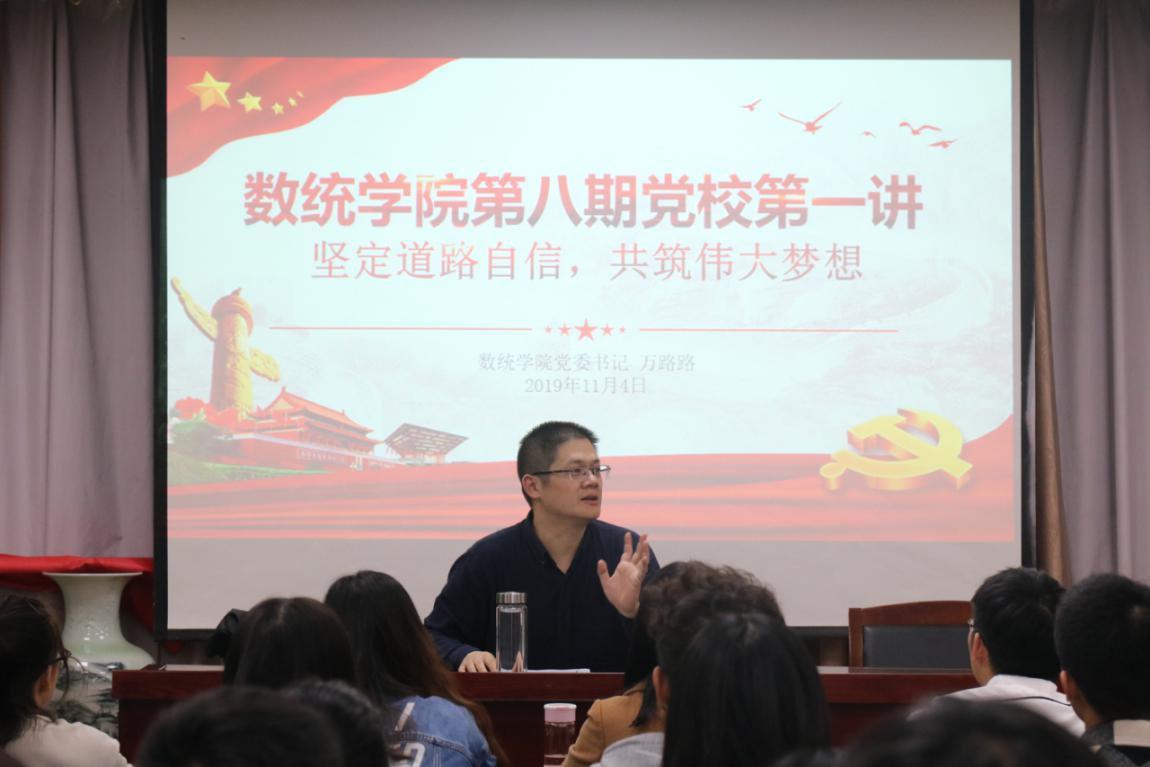 开班典礼在雄壮的国歌声中拉开帷幕。数统学院党委书记万路路强调,首先要端正学习态度,正确认识党课培训的重要性;其次要提高政治觉悟,切实增强理论学习的必要性;最后要端正入党动机,真正树立理想信念的长期性。万书记希望入党积极分子们能够珍惜每一次党课培训学习的机会,作为自己人生成长进步的新起点,坚定信念、勇于实践、超越自我、自觉奉献,做社会主义的建设者和接班人,为中华民族伟大复兴的中国梦贡献青春力量。