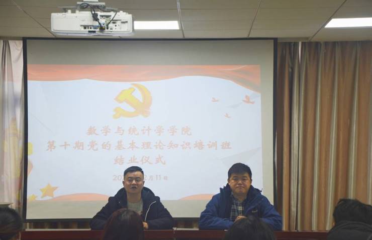 2020年12月11日中午,yl23411集团第十期党的基本理论知识培训班结业典礼于学院201会议室举行。结业典礼由数统学院团委书记周杰主持,学院党委副书记陆伟出席会议。