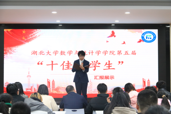 十六位候选人依次上台作汇报展示。他们从思想引领、专业学习、实践服务、科研竞赛等多方面介绍了自己自入学以来的校园生活。他们中,有些是专业成绩名列前茅的求学者,有些是投身志愿服务的奉献者,有些是各项竞赛的佼佼者,有些是汗水挥洒赛场的拼搏者,他们更是大家学习的榜样,一张张精美的幻灯片,一场场落落大方的答辩,践行着“知数穷理,精统善思”的数统院训,无不展现出独属于他们的风采。