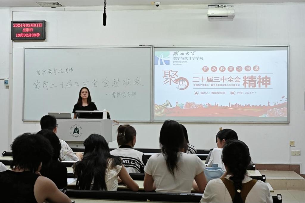 “开学第一天,学院组织573名学生同上‘开学第一课’,青锋党支部成员到驻点班级宣讲党的二十届三中全会精神,用‘青言青语’讲好党的创新理论。各暑期社会实践团队也到学院各班团分享‘行走的思政课’中,他们眼中‘可爱的中国’。我们希望通过这种更贴近学生的方式上好大思政课,引导同学们将个人成长自觉融入国家发展,成为新时代的见证者和建设者”,该院党委书记周霞介绍说。