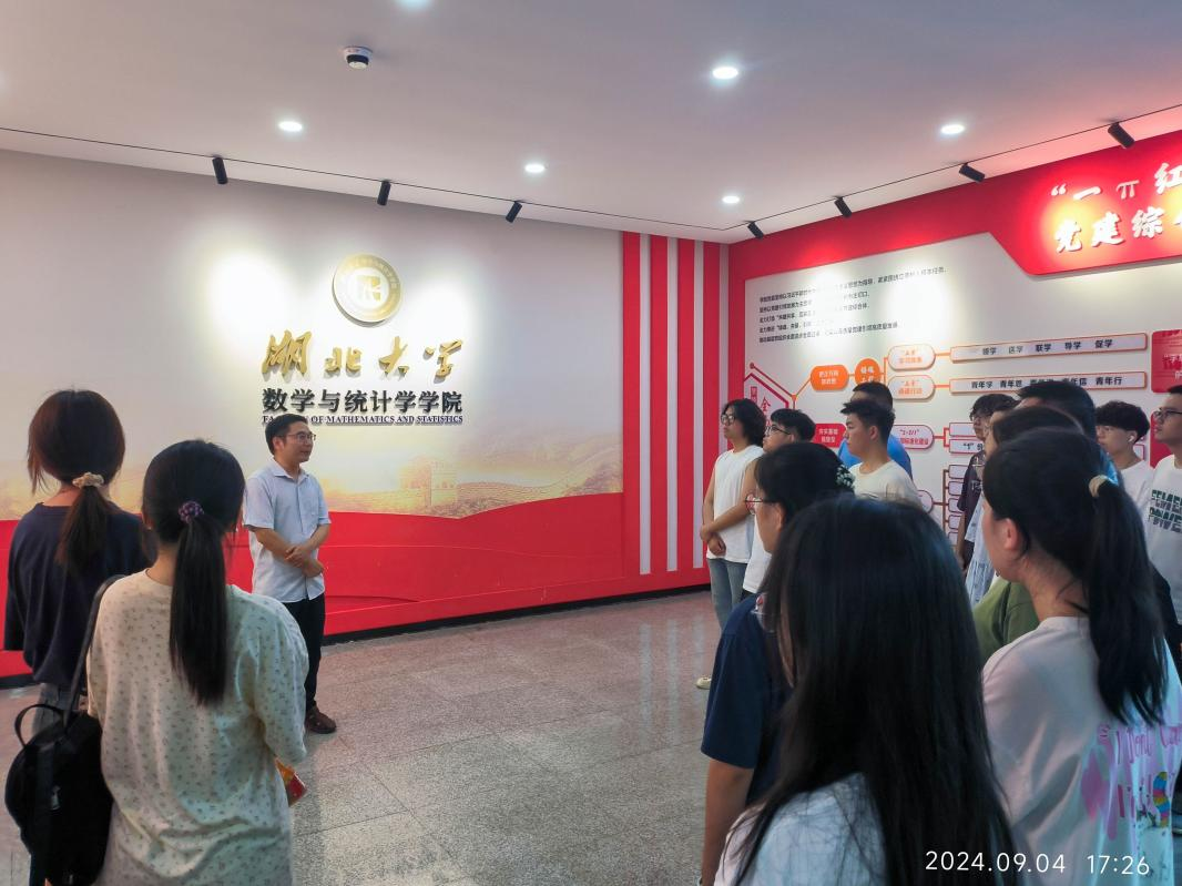在学院领导班子及青锋宣讲团的带领下,各班依次参观了我院“一π红光”党建综合体、文化长廊以及多功能活动区,为学生们介绍学院的办院理念和发展历程,让同学们充分感受到学院深厚积淀和奋发向上的学术氛围。23级应用统计班刘薇薇同学说:“此次活动让我更加真切地感受到了湖大的人文气息和精神底蕴,作为一名数统学子,我也将像馆内的前辈们那样奋发向上,积极作为,争取为湖大发展贡献一份自己的青春力量”。