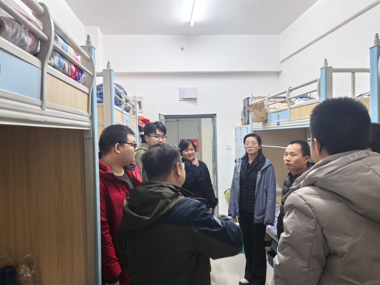 走访过程中,学院领导细致检查了寝室的卫生状况、设施设备、安全隐患等方面,并与同学们进行了亲切交流,询问他们的学习、生活情况,鼓励大家尽快调整状态,投入到新学期的学习与生活中。