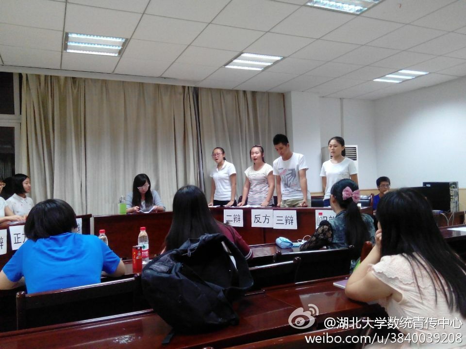 2014年9月26日晚七点,由数统学院与计信学院承办的辩论赛在数统学院201教室拉开了帷幕。本次辩论赛主要由13级数学一班与13级数学二班的辩论队成员担任正方和反方,短短的一个小时,让大家见证了两方的锋芒毕露和思想高度。