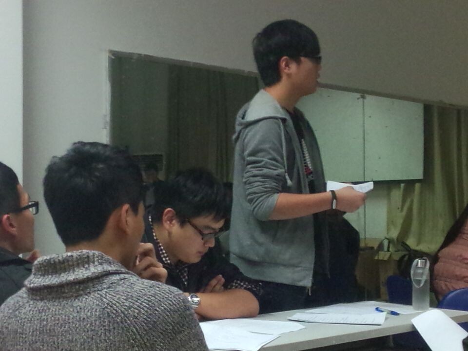 纵观整场研讨会,老师们多坐在椅子上,仔细聆听同学们的发言,在发言同学不知如何表达时提点建议一下,大部分时间都是同学们自己思考怎样更好解决这些问题,然后各抒己见,侃侃而谈,一面为自己发言准备,一面倾听其他发言者讲话,不时微笑表示赞同。当讲到“水费太贵以致同学们不太爱洗澡,图书馆位子不够总是站着”等问题时,有好几个同学不禁站起来补充具体情况,讲到激动时还配上极富个人色彩的手势和夸张动作,甚至角色扮演重现场景,师生不禁开怀大笑。