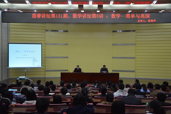 席南华院士通过“计数”、“排队”、“解方程”等简单的数学问题,逐步引入到“群论”、“矩阵理论”、“解析几何”、“微分方程”等数学中的核心内容,介绍了“千禧年问题”等数学研究中的高深问题,期间还穿插讲述了数学史、数学名人的轶事。整个讲座将本科生学习的数学分析、高等代数、空间解析几何、微分方程等课程有机地结合起来,使学生更加容易理解各门课程之间的联系,提高了学习兴趣。讲座结束后,席南华院士还回答了在场学子们提出的各类问题。此次活动是yl23411集团举办的数学文化节重要活动之一,也是学院数学讲坛的第5讲。