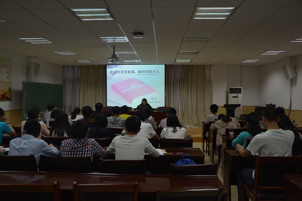 陈琴老师根据她对自我管理的认识,针对学生干部如何正确处理学习与工作的关系做了细致的讲解。她为大家介绍了自我效能感的内涵与作用、影响自我效能感的因素,同时,还根据同学们的实际情况,给出了提升自我效能感的方法与关于合理规划时间的建议。她说,学生干部要耗费比一般同学更多的时间在工作上,导致了学习与工作的冲突,所以良好的自我管理技能能帮助学生干部更好地适应环境。
