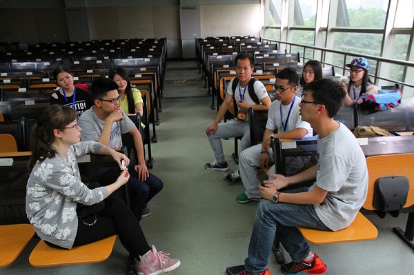 下午,调研团队赶赴重庆大学,与重庆大学化学化工学院研究生党支部成员就抗战纪念活动、学生党建、学科学习等方面进行了探讨交流。此外,调研团队还参观了位于重庆大学校园内的大轰炸纪念碑,并请重庆大学学子填写了调查问卷。