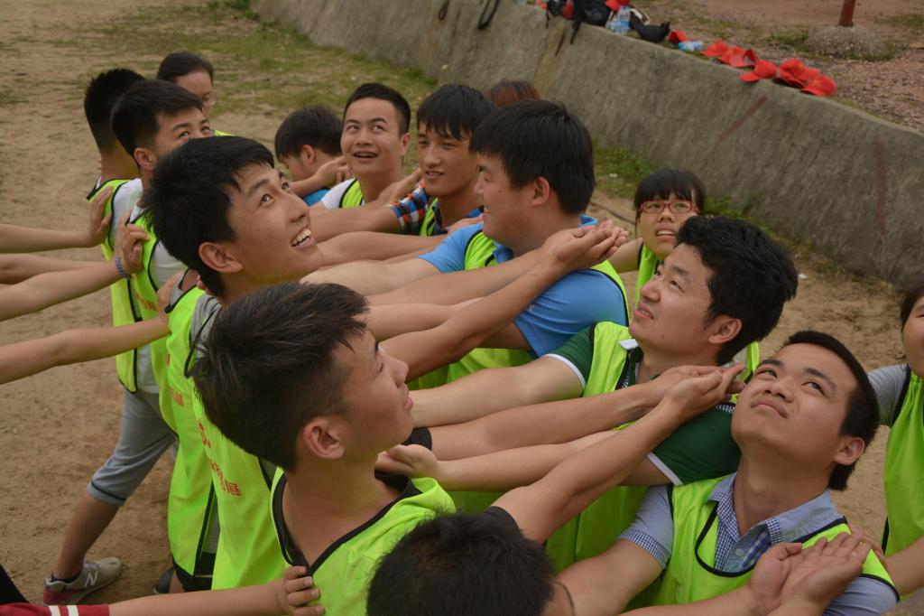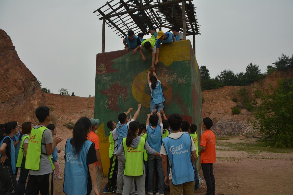 最后一个项目叫“毕业墙”,也叫“海难逃生”,一个4.2米的墙,靠着成员们之间的帮助,大家一起攀过“毕业墙”。“勇士队”与“小胖队”一起努力,不分彼此。大家依靠着团队的力量,42个人用了10分21秒的成绩完成这个“海难逃生”,顺利“毕业”。在此过程中,最辛苦的莫过于最下面的人桩和最上面的拉手。活动结束后,当教练看着人桩的泛红的肩膀时问道,你们有何想说的。“我是生活部的,这是我的责任”刘勇这样回答。