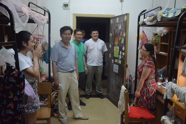 在2015届毕业生即将离校之际,6月16日晚,数统学院党委书记游春林、院长曾祥勇、副院长黄朝炎、党委副书记陆伟等在毕业班班主任和辅导员老师的陪同下深入三期公寓看望即将离校的毕业生。