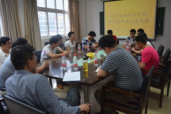 6月17日下午,数统学院2015届毕业生座谈会在203办公室举行,院党委书记游春林、院长曾祥勇、副院长黄朝炎以及各系主任及教师代表与来自三个班的十几名毕业生进行了面对面的交流。会议由党委副书记陆伟主持。