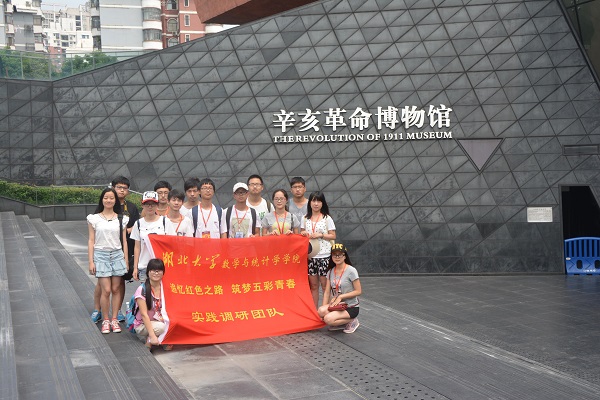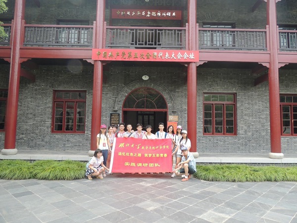 一行43人分成三个小组,同时赶往武昌区的辛亥革命博物馆、辛亥革命纪念馆和中共五大会址三个红色纪念馆,进行参观学习和问卷的发放。一路上经过了博物馆里耻辱的条约墙,途经了孙中山伟人的雕塑和他的总统府,直至最后走进了中共五大的旧址。曾经清政府的软弱与无能,曾经外强的欺凌与侮辱清晰的展现在我们的面前,我们在悼念历史的同时又为自己能生活在这所城市而感到自豪,那些史书记载的资料告诉我们辛亥革命的第一枪从这里响起,武汉人的敢为人先追求卓越的精神似乎也渐渐融入到我们血液里,生活在这座城市里,我们有责任也有义务将这种精神一直传承下去。