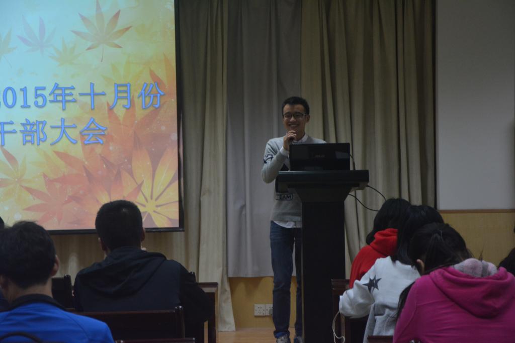 会议开始,秘书部古梦乐就学院党建、活动开展等方面的工作进行了总结。学院学工办马荣老师在指出本月学生工作的不足的同时,对下月要做的工作做了详细说明。各个部门的部长就即将要开展的工作也一一上台做了安排。