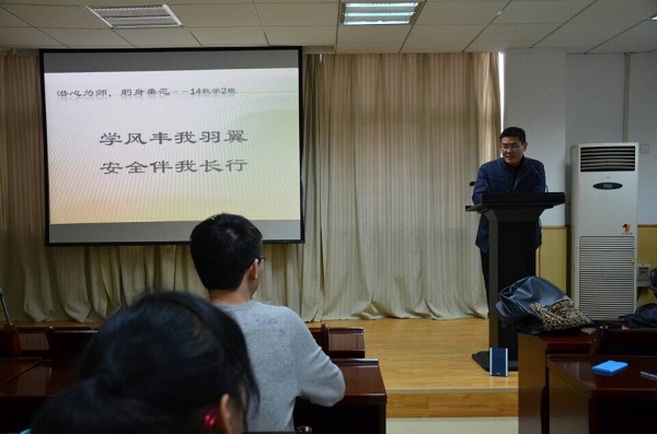 3月15号,14信科一班在数学与统计学院开展了“安全法制教育”主题班会,党委书记游春林和学工办马荣老师参加了此次班会,班会由副班长杨壮主持。班会期间,大家通过观看安全法制教育视频及学生对视频的感想使学生意识到安全法制的重要性,之后游书记也给同学们讲解了安全法制的重要性。