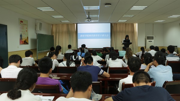 5月6日下午,数统学院四月份学生干部大会在院201学术报告厅顺利召开,学院党委副书记陆伟、辅导员周杰和马荣老师以及学联会全体成员班干参加了此次会议。会议由学联会副主席丁腾主持。