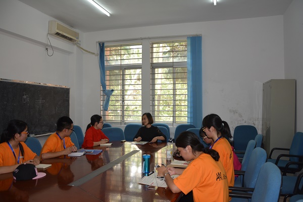 广州调研队第二站华南师范大学,6月5日下午一行人与华南师范大学数学科学学院的主要学生干部进行了交流探讨。交流气氛轻松活跃,调研队主要就师范技能的培养交换了意见。对于学生们思想引导上,华师学生会主席表示他们建立起了比较系统的学生管理制度。调研队队长王联豪也表示华师的“学长团”引导大一新生的方法很可取。