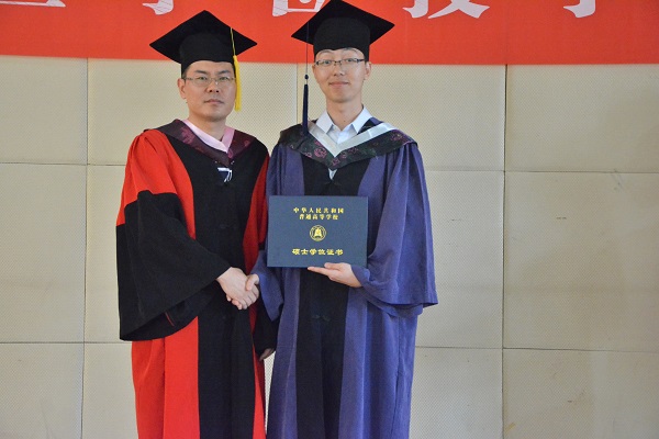 院长曾祥勇为全体毕业生颁发学位证书,拨动流苏。