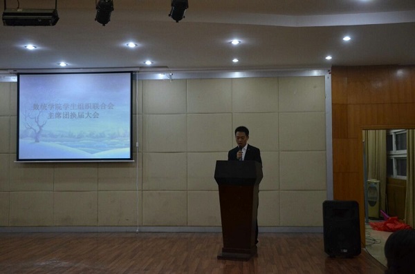 10月20日晚,数统学院学生组织联合会主席团换届大会在院八楼报告厅顺利召开,院党委副书记陆伟、学工班老师周杰、马荣以及第二届、第三届学联会全体成员参加了此次大会。