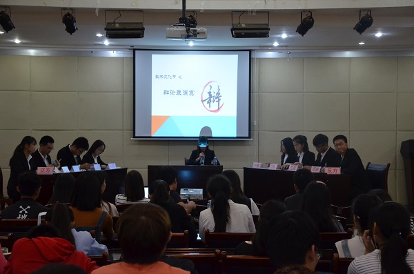 10月21日晚五点半,数统学院院际辩论表演赛在院八楼报告厅顺利举行,政法学院辩论队队长仇浩、商院辩论队队长李春妍和计信学院辩论队队长刘紫琴担任了此次辩论的评委。此次辩论以“男人和女人哪个更需要关怀”为辩题。