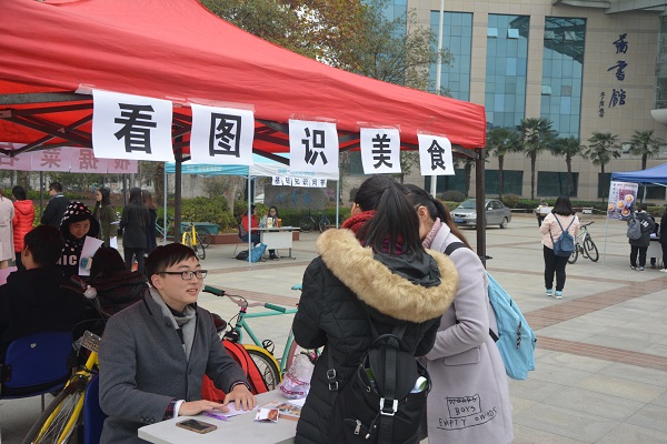 活动中,一项名为“猜猜我是谁”的游戏瞬间吸引了许多同学的热情参与,参与者需要闭着眼品尝一些生活中常见的小零食,然后猜出它们的名字和口味。玩过这个游戏的一名数学与应用数学专业的同学感慨说:“本以为身为吃货的我一定能猜出它们的全部名字和口味,可是现在我才知道我只注重了吃,却没有记住它们的名字,以后一定会多加留意。”除了这个游戏之外,还有美食基础知识问答、根据菜名答食材、看图识美食、美食做法知多少、‘我’的背景、我是起名家等游戏,各个游戏摊位前围满了前来参加同学,活动持续了三个多小时,一直到晚饭时间才结束。