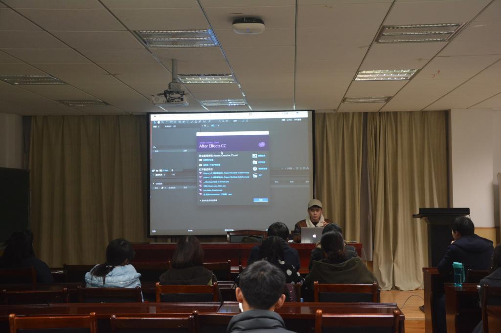12月1日、2日两天晚上,艺术学院研究生郎涛、张国龙做客数统学院学生干部培训班。为学生干部讲解了数码影视编辑软件的应用技巧以及海报制作技巧。