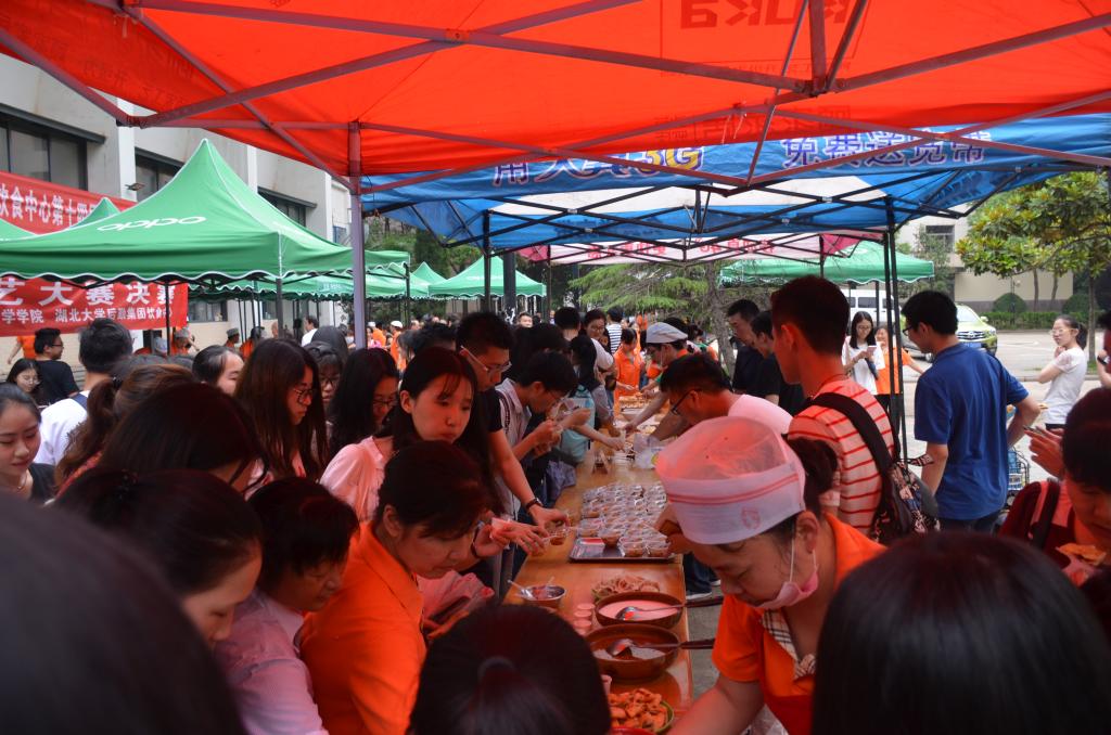 活动伊始,展示台上摆好的已经做好了的菜品,引来不少学生的驻足观看。上面摆着五花八门的菜肴,有各个食堂的特色菜品和各个地区的美食,也有食堂常见的菜色。随着比赛的开始和深入,同学们将更多的注意力放在了选手的做菜过程中,期间不少同学表示要偷学两招自己做着吃。在试吃环节,工作人员抵挡不住同学们的热情分发下去的菜肴没有一分钟就见底了,原本摆了一桌子的食物瞬间被同学们一扫而空,有些同学哭丧着脸跟工作人员说到我连一口都还没有尝。根据色香味等多个方面评价,最后熊孩子队和黑暗料理队搏得评委们的青睐,获得此次活动的桂冠。