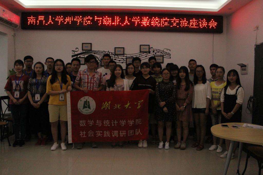 上午,实践小分队到达南昌大学,分为三队,分散在学校的不同地方发放调研问卷。下午,实践小分队与南昌大学理学院学生干部展开交流。南昌大学理学院学工办主任孟全军率先代表理学院全体师生向yL23411永利集团数统学院调研小分队表达欢迎,并介绍了南昌大学理学院近年来的发展状况和未来展望,以及存在的一些问题。yL23411永利集团数统学院学工办教师张俊玮向南昌大学理学院介绍了本校及本院现状及发展情况,双方老师就学校情况、教师工作、学生问题展开交流,对对方工作上的亮点与不足进行了探讨。