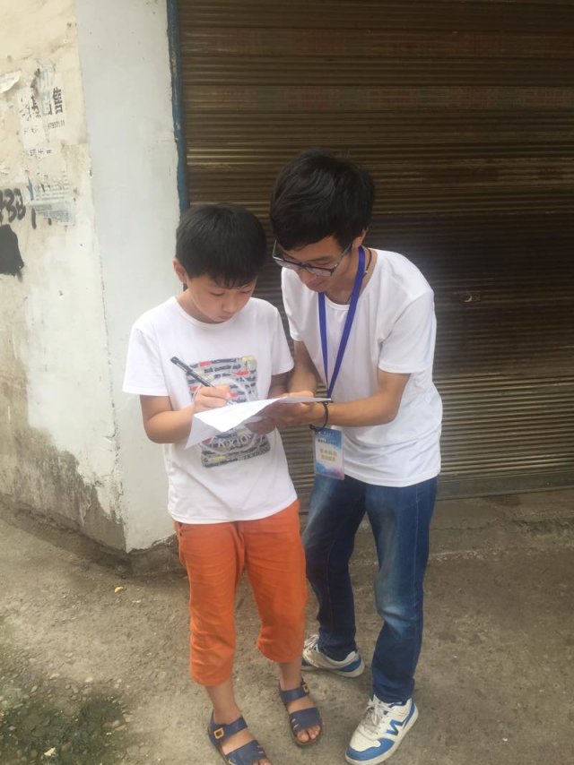 成员们依计划分为两组,每组四人,分别负责采访,记录,拍照,录像等工作,对横石镇居民进行采访。在采访中成员们了解到,横石镇区域出现留守儿童情况很普遍,绝大部分孩子的父母会在假期回来看望孩子,不定期与孩子电话联系,一年只回来一次的也普遍存在。