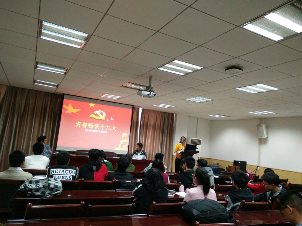 2017年10月23日,院信息与计算科学1602班团支部开展了关于“青春畅谈十九大”的主题团日活动。班级全体同学一起分享十九大,一起畅谈十九大,更加深入学习十九大精神。