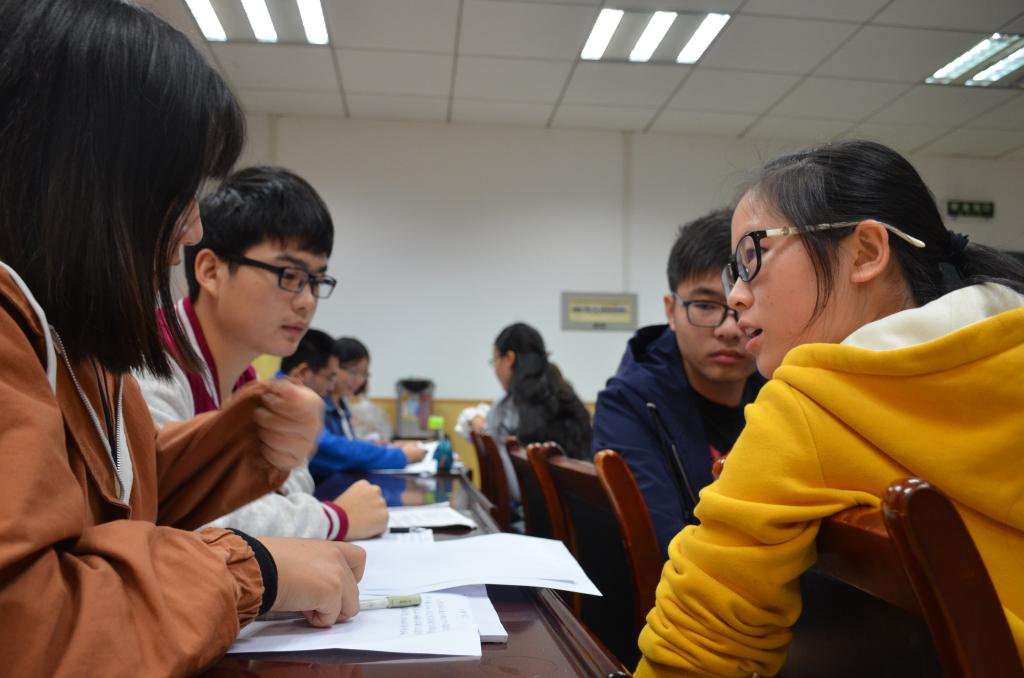 “耶,这个题又做对了!”“第八题错了,原来选B啊。”“淘汰的是第二组,不是第六组。”活动现场,学生们在公布答案和得分时讨论的声音此起彼伏,他们或露出志在必得的神情,或因为答错题而皱眉,积极参与,气氛活跃。周杰表示,“此次活动通过体验式学习的方式,加入压力测试和团队竞争机制助学,团干部们积极参与,氛围活跃,达到了学习的效果。”作为老师,他希望学生学习十九大不仅仅停留在标题和碎片化的知识,更需要系统学习其思想、脉络和精髓。16级信科专业的甘宁是获得冠军的小组的成员,对于此次学习交流会,他谈到,“今天的团日活动是一次非常有意义的团日活动。我想,一个好的团日活动,就是大家从心底里喜欢且愿意参与,又能在相对活跃的环境中学习思考深邃的纲领、政策和思想。”